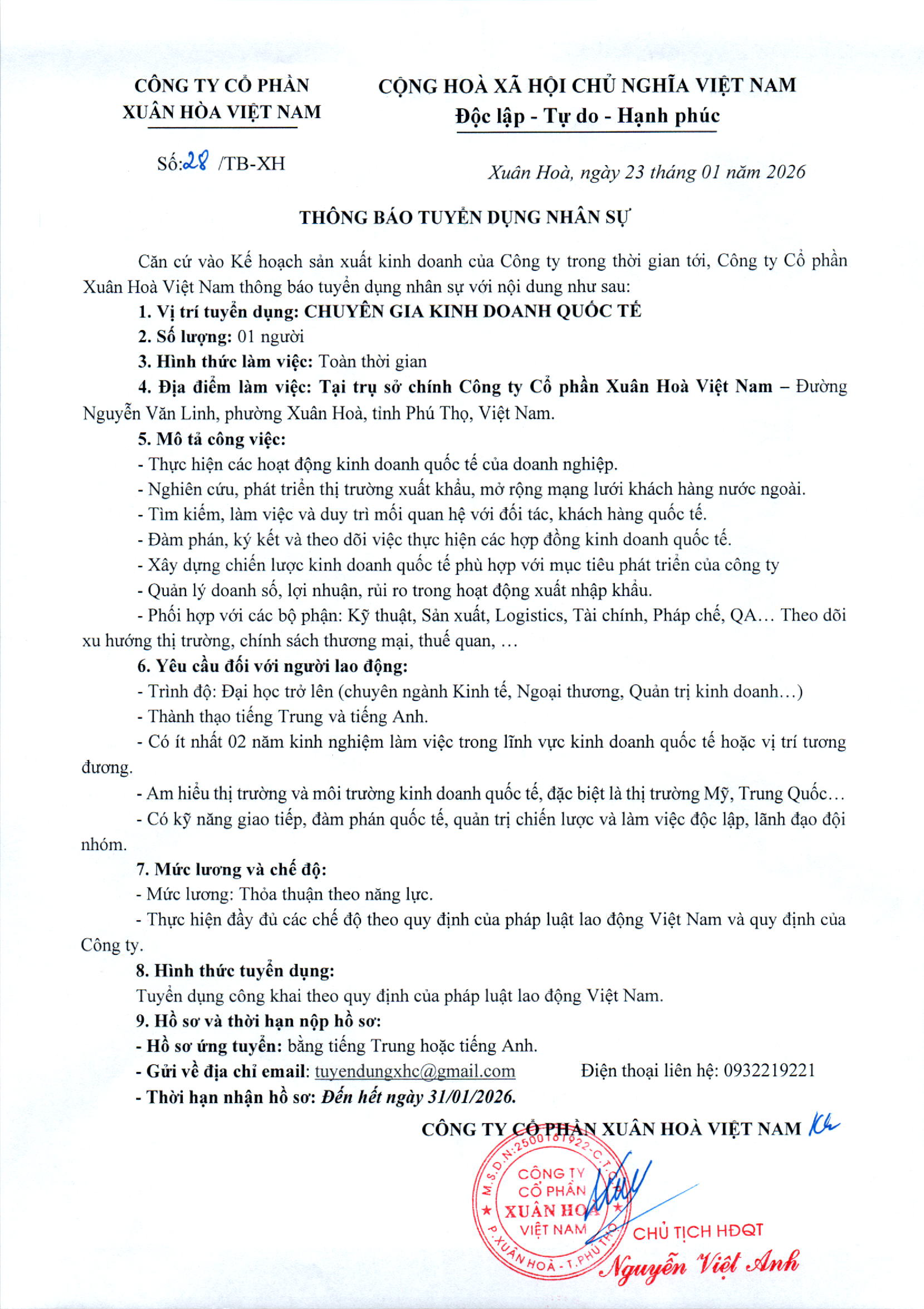 XUÂN HÒA sẽ liên hệ lại với bạn trong thời gian sớm nhất có thể, xin cảm ơn !